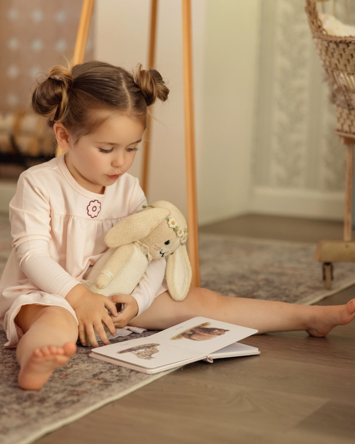 Girls "A Little Flower Power" Embroidered Mid-Length Ruffled Lounge Gown