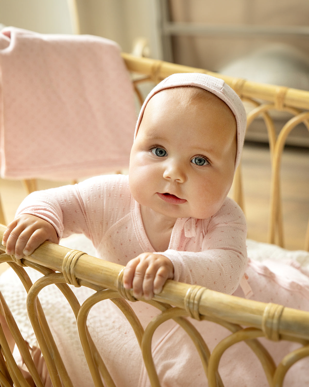 Details make all the difference for this adorable toddler girls' footie. It's crafted for blissful comfort in a premium pointelle knit featuring super-soft rayon from bamboo. Plus, it's designed for durability with a banded wrap-style neckline and sturdy double-stitch trim.