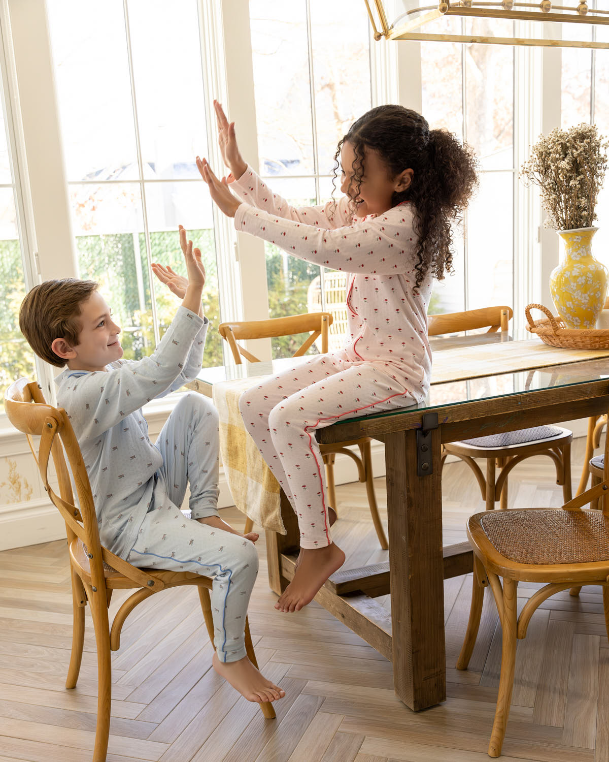 Cozy warmth. Breathable comfort. This 2-piece boys' lounge set delivers both thanks to its luxe fabric blend: silky-soft plant-based rayon plus pure premium cotton. It's knit with a cool pointelle pattern, designed for breezy airflow. And it's adorned with a playful print and tailored contrast trim.